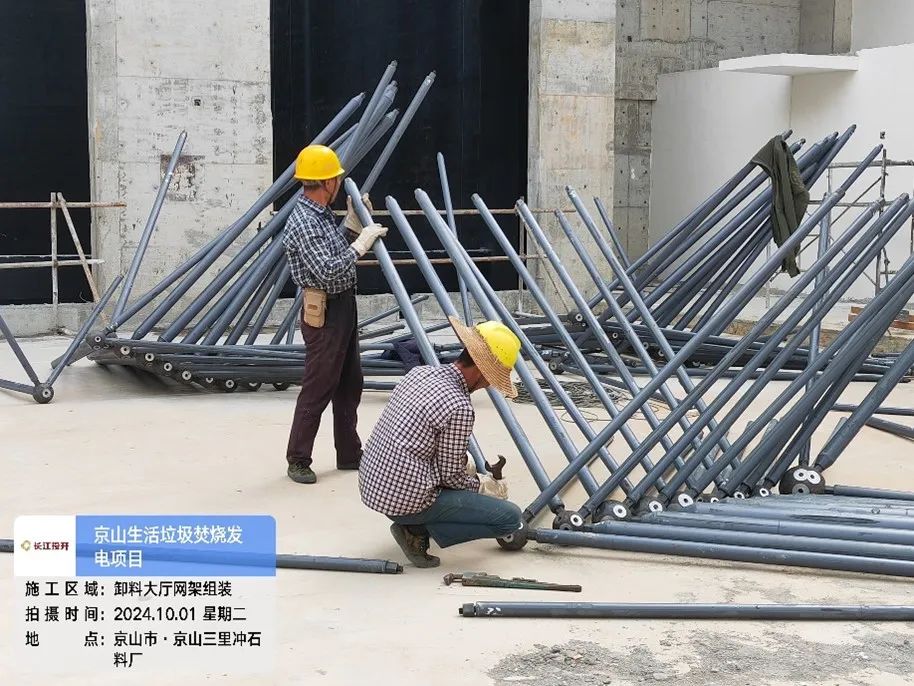 京山市生活垃圾焚烧发电项目现场约110名工作人员在保障安全的前提下,全方面集中统筹、调配优势资源,合理优化工作节点,加强管控重要施工环节,高效推进项目建设步伐。