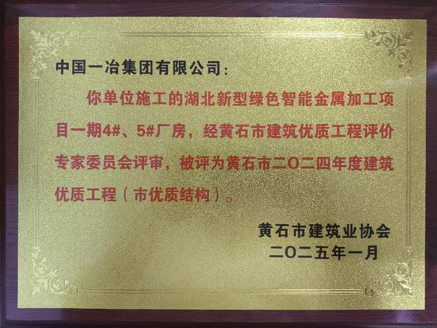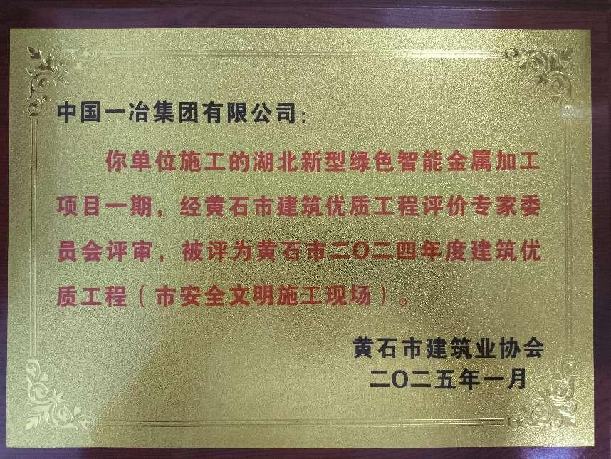 2024年12月,黄石长乐山工业污水处理厂项目荣获“2024年度黄石市市政示范工程金奖”;2025年1月,湖北新型绿色智能金属加工项目一期工程荣获“黄石市2024年度建筑优质工程(市安全文明施工现场)”及“黄石市2024年度建筑优质工程(市优质结构)”双项殊荣,标志着长江投开在市政及房建工程的代建精细化管理方面取得再一次突破。