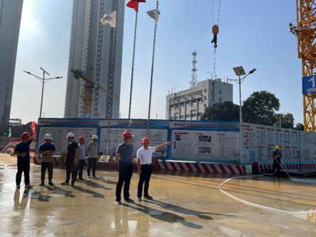 “为了项目的建设发展,节日期间你们坚守岗位、辛勤奉献,大家辛苦了。”虽正值国庆假期第一天,生态中心项目施工现场仍有序紧张作业。陈骏峰详细询问了项目设计、施工等流程,实地察看工程建设进展,与项目负责人深入交流,仔细了解项目进度及安全保障等情况,对干部职工们守岗敬业精神给予了高度肯定,并再三叮嘱现场管理人员要做好节假日期间在岗职工的后勤保障工作,落实好安全作业的相关保障措施。他强调,建设长投总部生态中心项目,对于提升房投超高层建筑的开发水平、增强集团的市场综合竞争力具有重要意义,一定要科学组织、优化程序、精细施工,要在确保职工安全、健康的前提下,全力推进项目高质量建设。