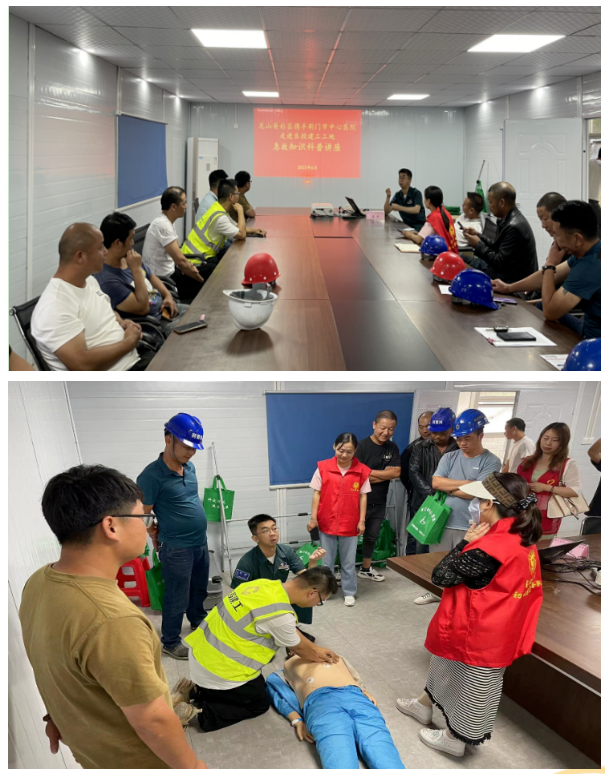 义诊现场,专家们提供血压、血糖、心电图等健康体检及咨询,针对常见疾病预防及治疗常识进行讲解,并根据工人们自身情况给与专业治疗建议,耐心回答农民工问题。同时向工友们宣传急救知识,开展应急受伤包扎讲座、心肺复苏演练……
