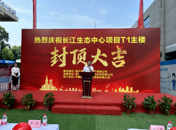 高楼平地起,封顶好吉时。7月26日上午10时,伴随最后一方混凝土浇灌到位,长江生态中心项目主体结构喜封金顶,项目施工取得阶段性胜利,为2024年12月计划竣工交付奠定坚实基础。长江产业集团运营总监杜三湖,长江投开党委书记、董事长黄斌出席封顶仪式。