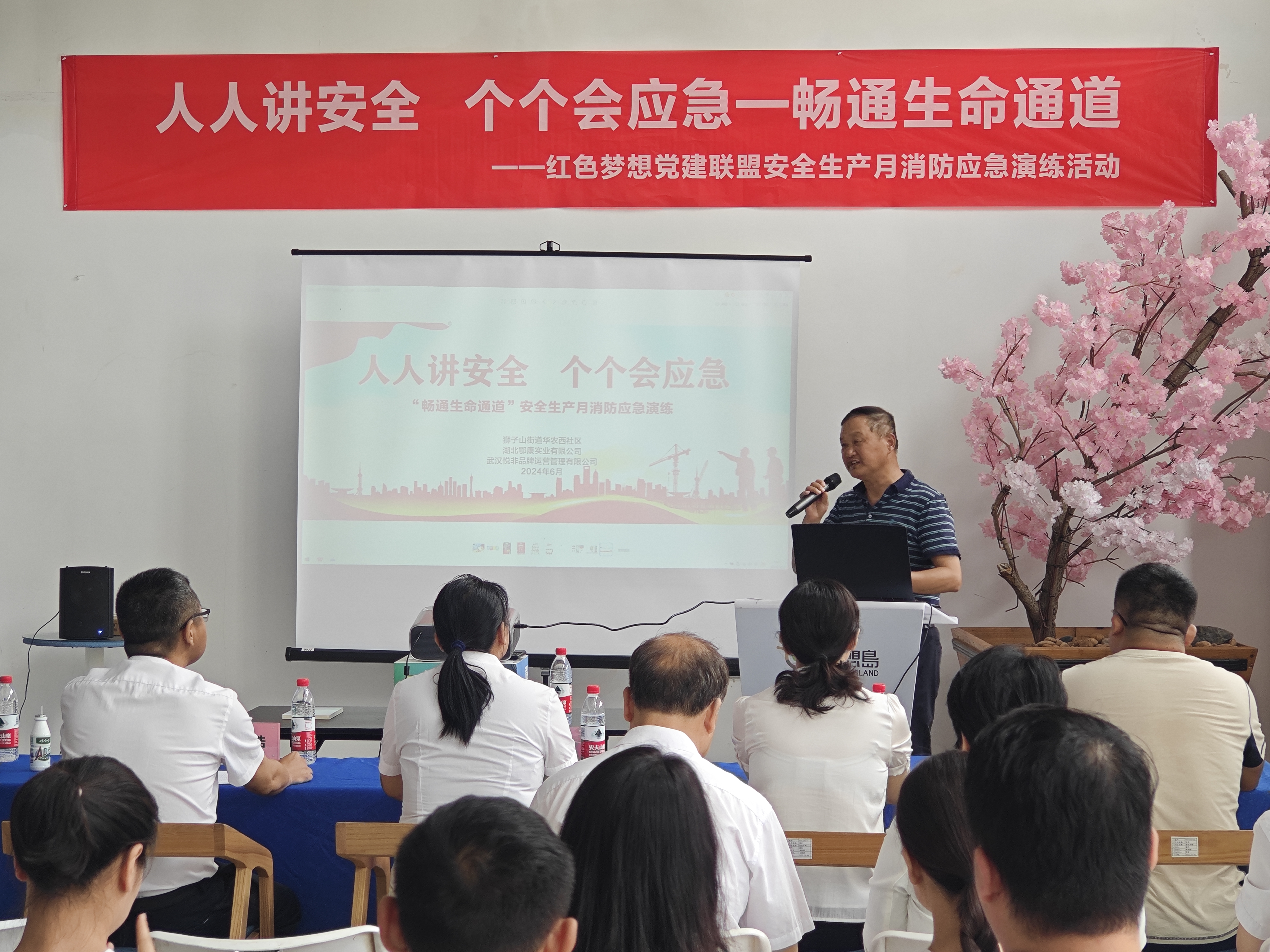 武汉悦非品牌运营管理有限公司物业总监高健致辞,华农西社区党委副书记徐艳作动员讲话,洪山消防救援大队南湖消防救援站杨镇宇教官围绕“消防安全法规要求、火灾预防基本概念、火灾典型案例、救火知识常识”四个方面向全体参加活动人员进行了消防安全理论知识宣传培训,现场展示了消防栓的使用方法,提升应急响应和火场自救能力。