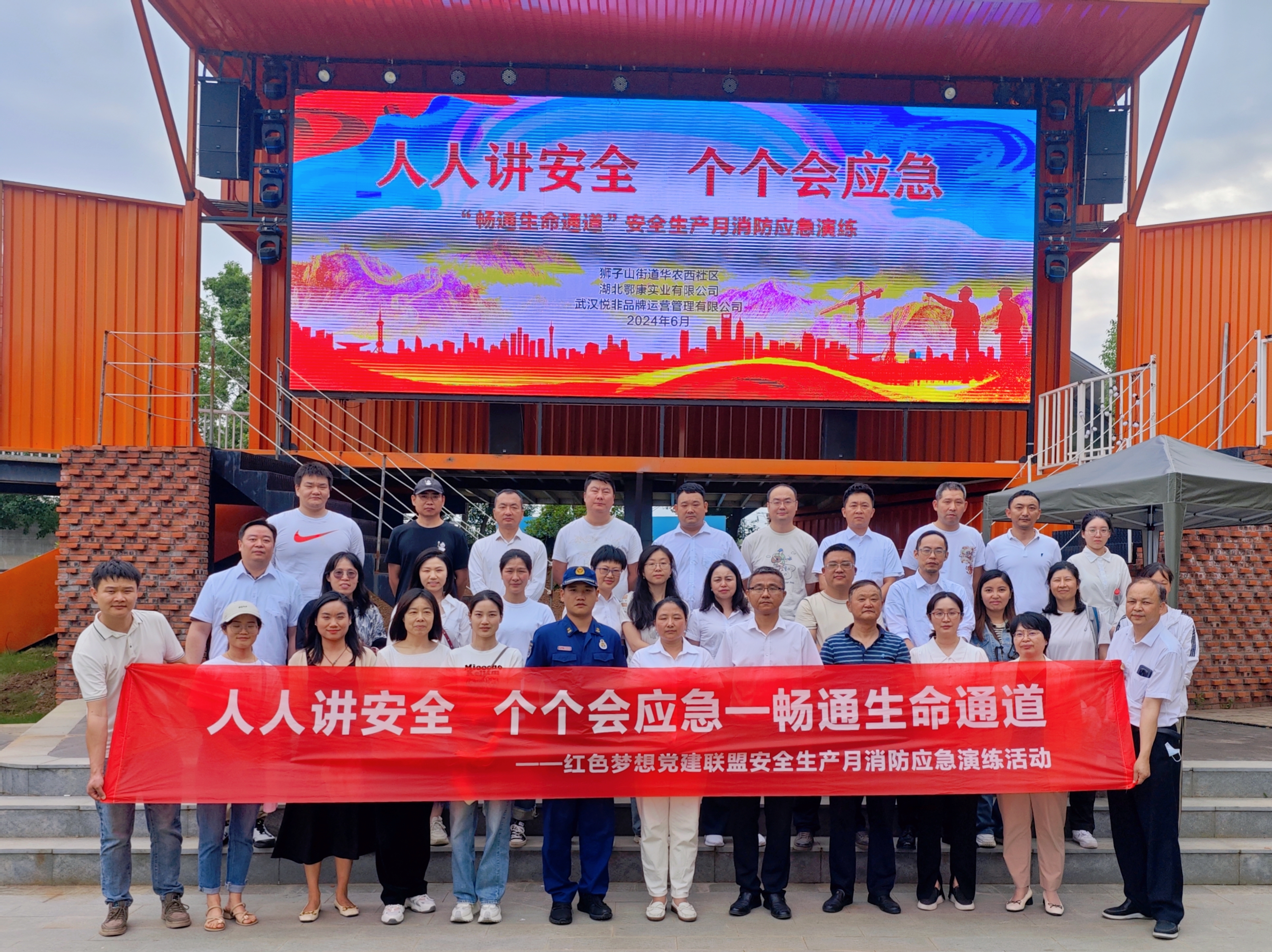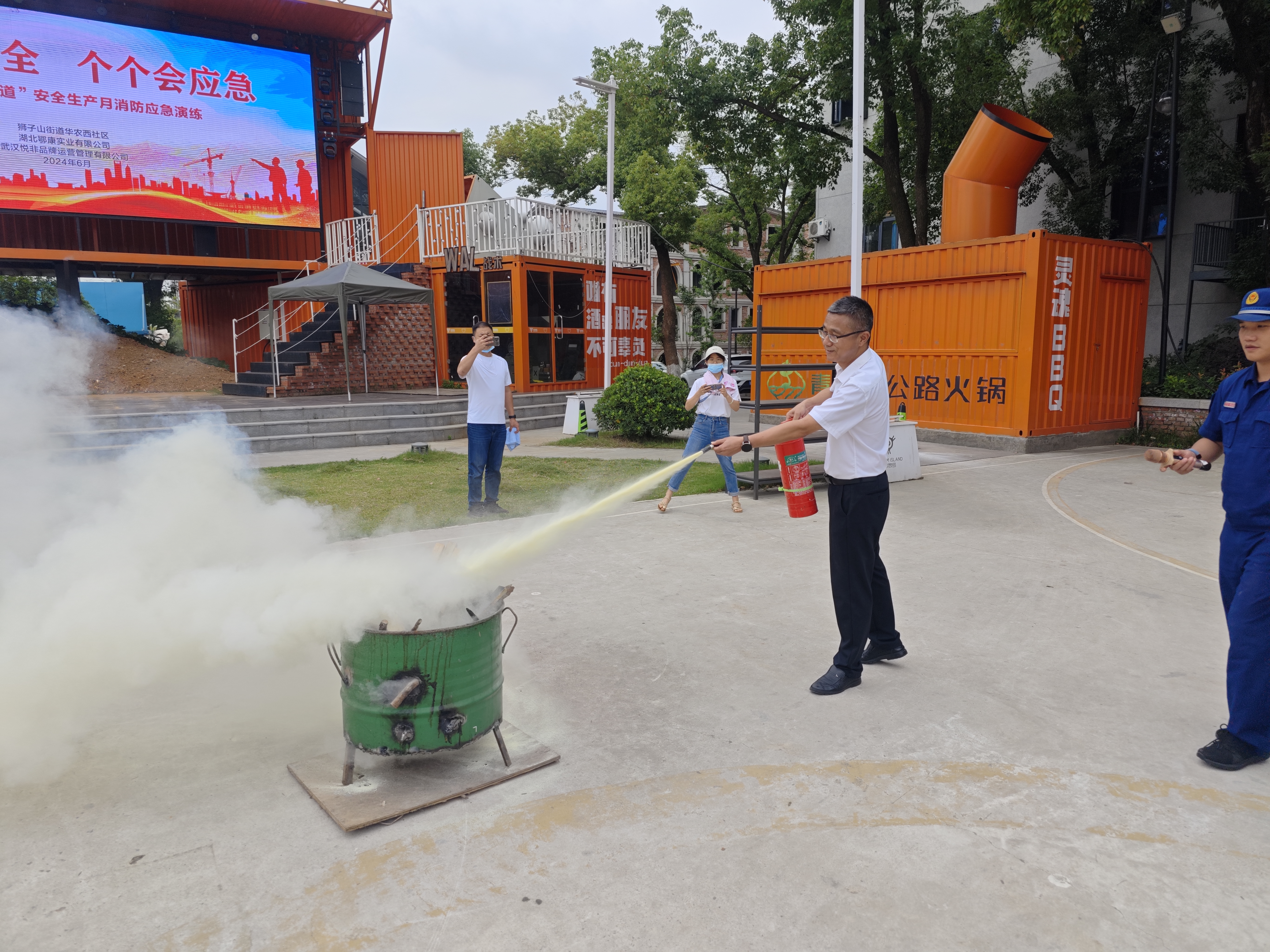 生命重于泰山,安全高于一切。为进一步强化公司职工、园区企业和街区商户的消防安全防范意识,提高自救和火场逃生能力,6月5日下午,湖北鄂康实业有限公司、狮子山街道华农西社区和武汉悦非品牌运营管理有限公司共同举办了以“人人讲安全 个个会应急——畅通生命通道”为主题的“安全生产月”消防应急演练活动,共同缔造园区安全经营环境。