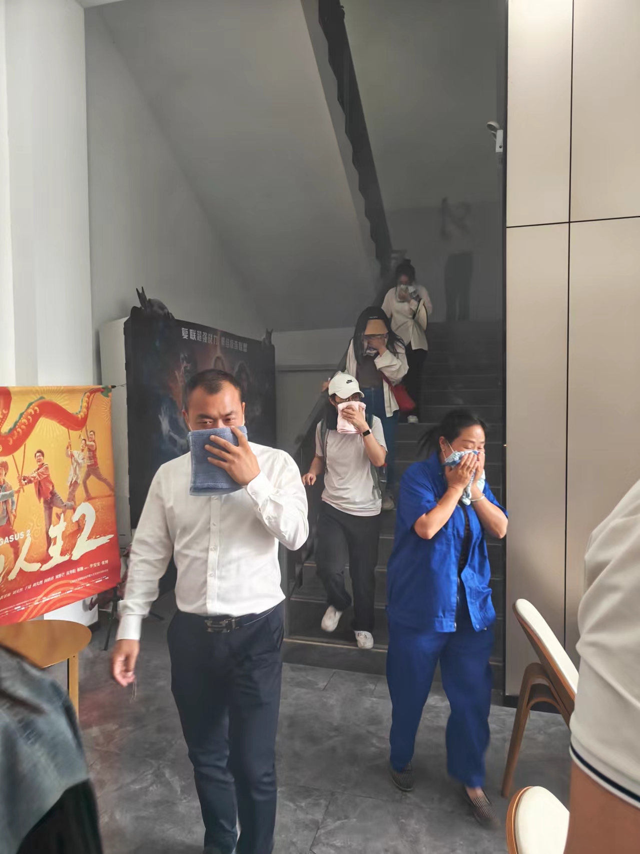 “唧唧唧唧.....”随着烟感器警笛拉响,一股浓烟从元宇宙三楼冒出。“三楼着火了,快,打电话报警,赶紧组织人员疏散...”瞬间浓烟滚滚,楼梯可见度几乎为零,现场管理人员边查看情况,边组织人员疏散。大家用浸湿的毛巾捂住口鼻,按照指示标识沿着楼梯匍匐前进,迅速撤离。到达集合点,清点人数,发现有人还未逃离“火场”,迅速组织“施救”。身临其境的体验让大家感受到了“黄金自救1分钟”的宝贵。“演练时的浓烟都无法忍受,如果真正在火灾现场,有火烤还有浓烟的情况下,我们该如何应对.....”,畅通生命通道,应急防范意识非常重要。演练结束后,教官通过模拟火源指导灭火器的正确使用方法,以“练”筑“防”,真正做到防微杜渐,慎终如始。