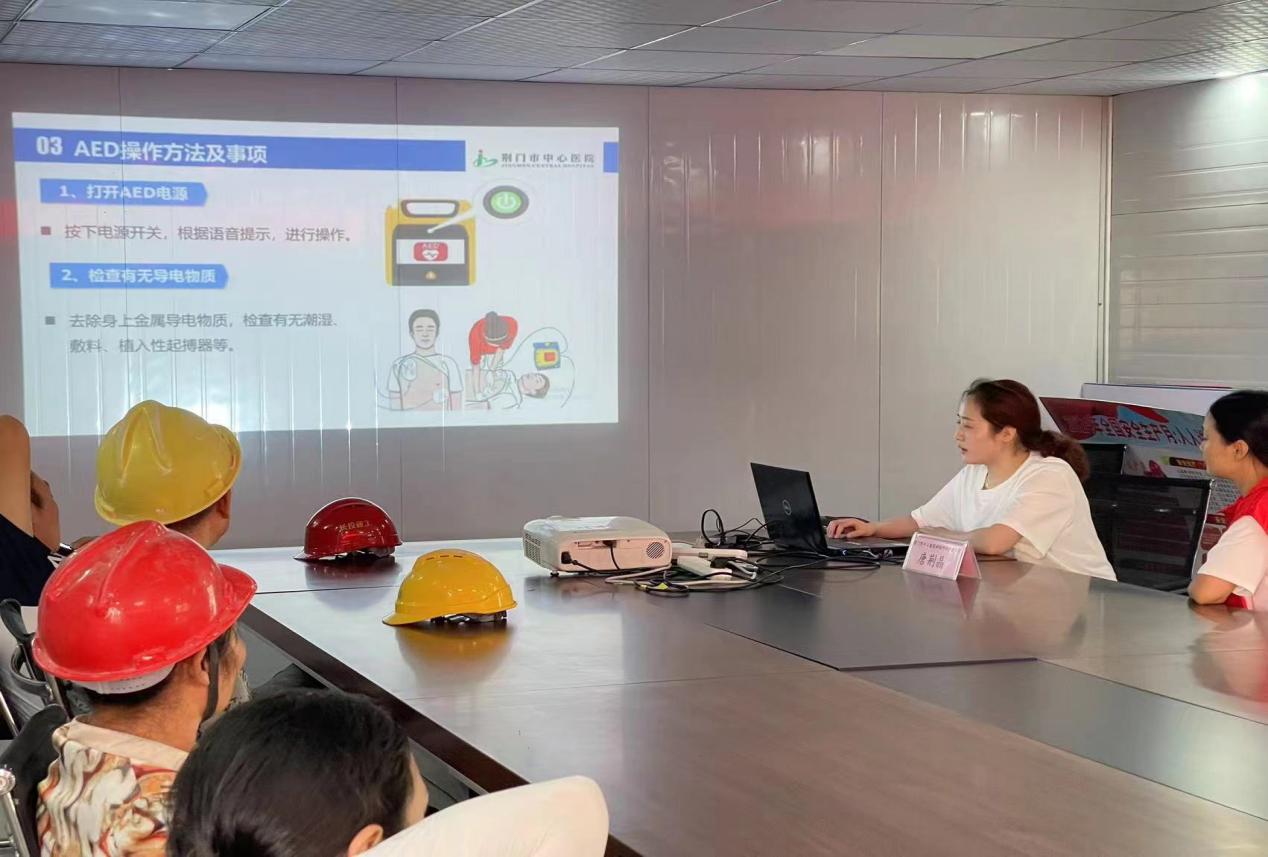 义诊现场设置了测血压、血糖、健康咨询、眼科等项目,医生耐心询问工友们日常生活习惯以及身体状况,讲解在高温下工作的注意事项,以及遇到意外时的基本急救措施,通俗易懂地解答各种问题,让工友清楚了解常见疾病的防治知识。同时,提醒大家要养成健康的生活方式,面对疾病要早诊早治,避免小病扛着、拖着的不良就医习惯。义诊后,荆门市中心医院组织开展《双人心肺复苏+AED操作技术》专题培训,提升工友们对突发急救事件的应对能力,医生们精湛的医术和清晰耐心的讲解受到现场一致好评。