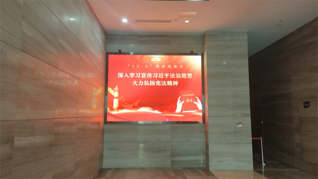为“宪法宣传周”活动提前预热,地信产业基地充分利用电子屏幕等宣传阵地载体,投放宪法宣传海报视频,进一步增强园区企业法治意识、树牢法治观念,在园区营造尊法学法守法用法的浓厚氛围。