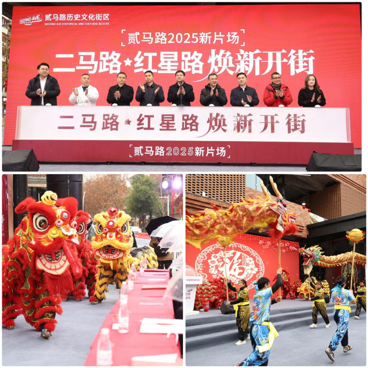 二马路开街一系列精彩纷呈的活动,热闹非凡,为市民和游客带来了沉浸式的美好体验。二马路2025新片场以碰撞时代潮流、展现城市活力、营造新年氛围为方向,设置醒狮巡游老字号主题报亭、非遗展示、“在贰马路”主题汇演、街头仪式等环节于行走中体味文化,在互动中触摸宜韵。