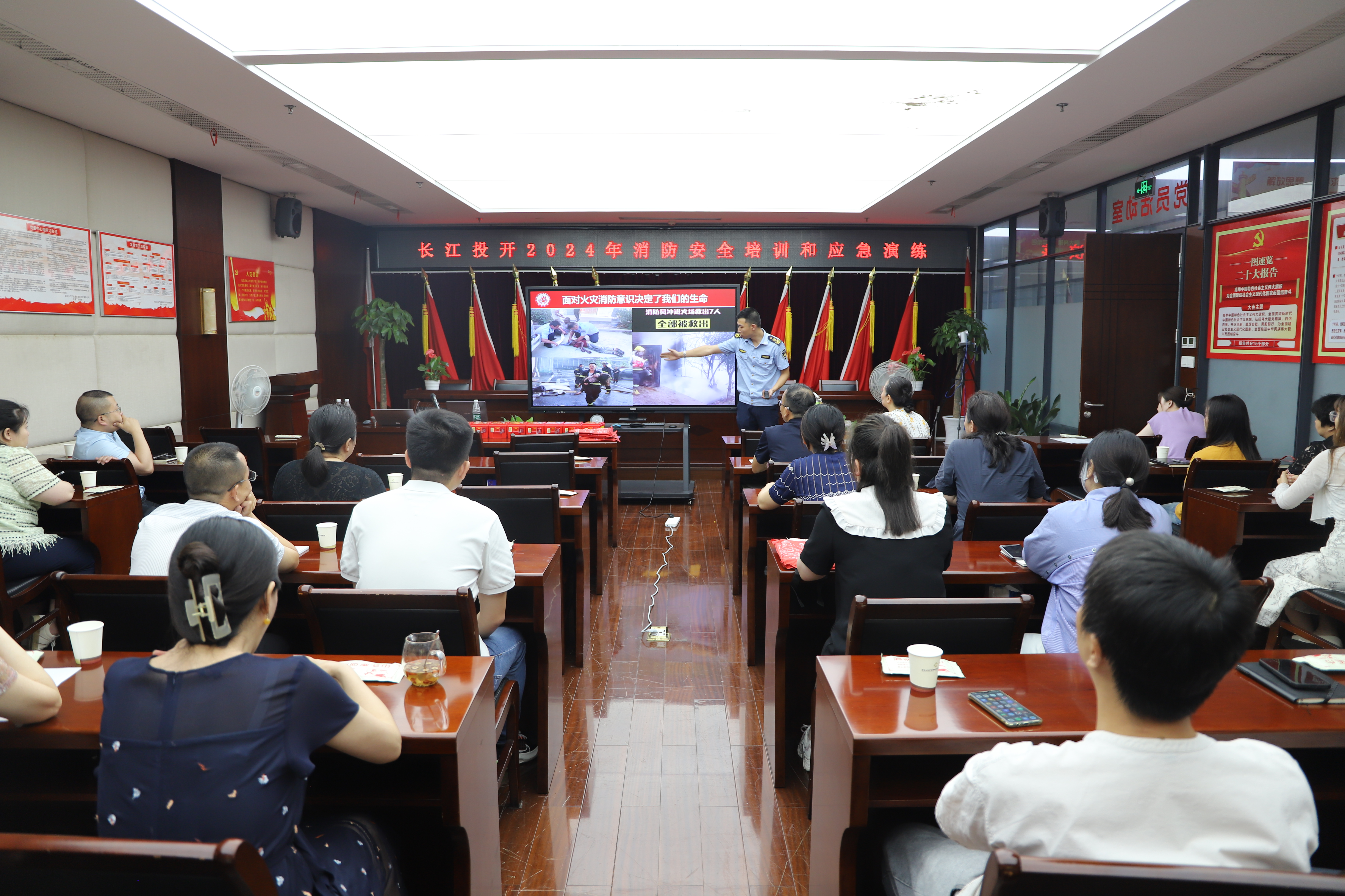 长江投开相关领导、各部室及大楼物业代表参加培训。