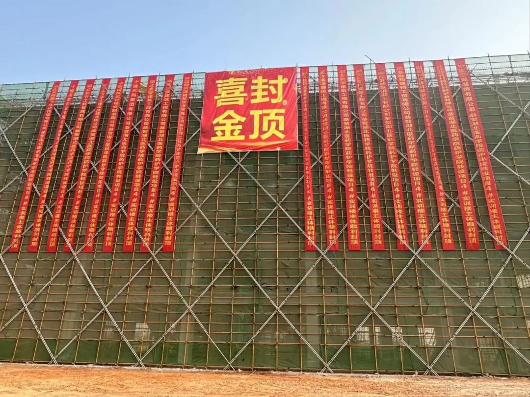 为保障新校区尽快投入使用,项目建设和代建管理团队自2024年7月18日发布中标通知书,次日EPC总承包单位进场施工以来,多次召开协调会、专题会,论证各种技术方案,紧盯进度目标、深化精细管理、推动提质增效,严格制定各专项计划,不定期开展进度计划分析,全力以赴抓重点、克难点、保节点,最终提前完成两栋主体结构封顶任务。