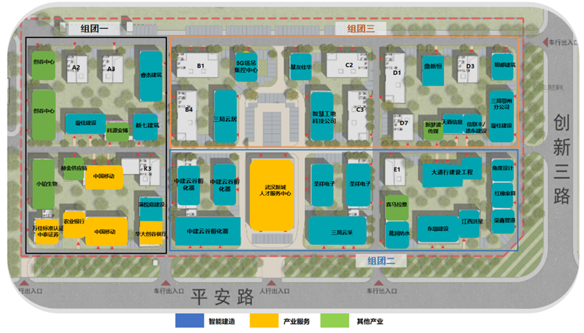 中建智能建造产业园位于由长江投开与中建三局联合投资建设运营的双创谷产业园区内。目前,双创谷产业园首期共计75栋独栋研发楼已竣工交付投入运营,通过政府联合招商不断深化,成功引进政府平台公司及省内外企业等重点招商引资企业入驻园区开展产业孵化,先后引入以智能建造和产业服务业为主的30余家企业,其中智能建造类17家、产业服务类9家,其他产业4家。